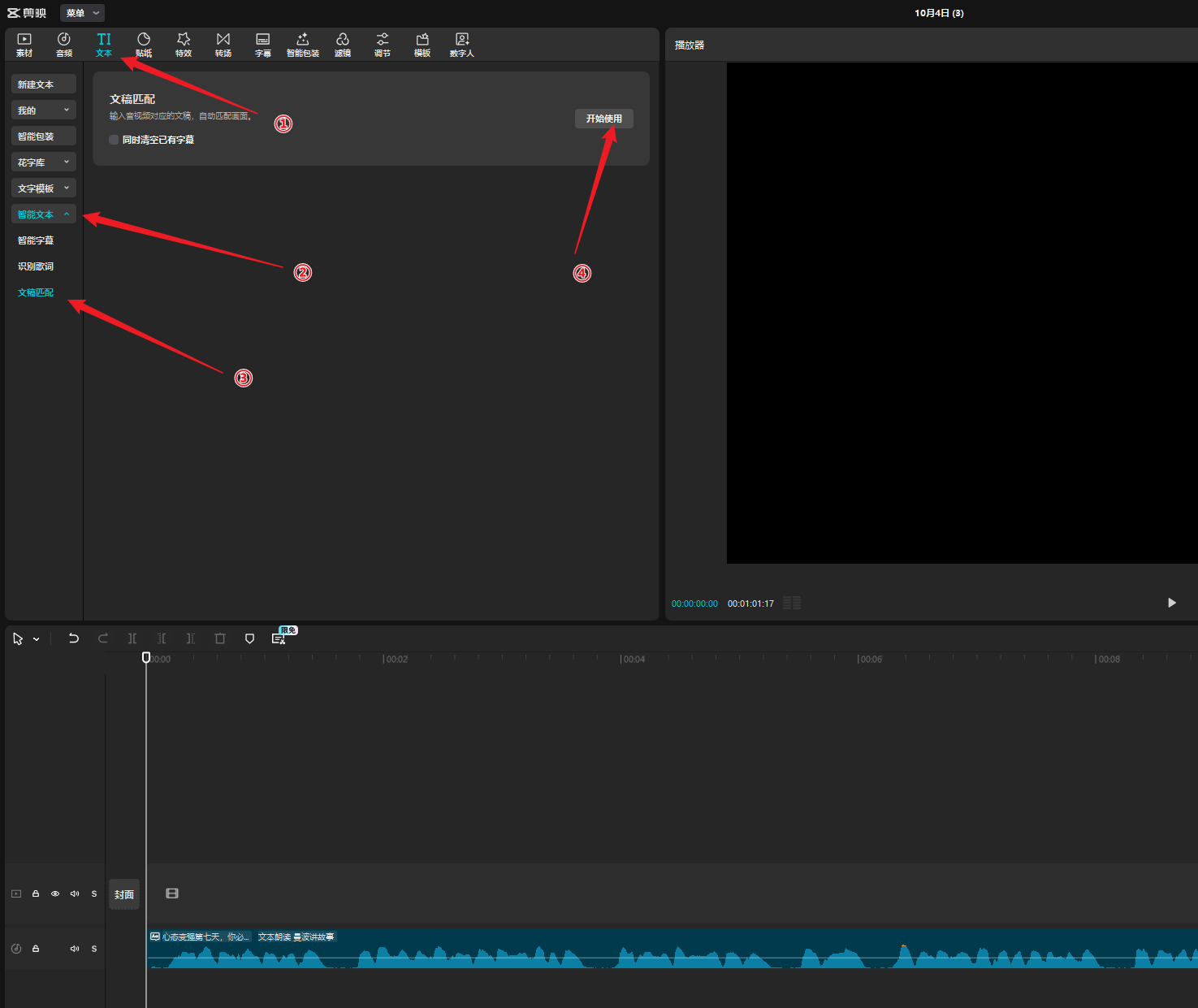 在文本中点击默认文本,把文案稍作调整之后粘贴进去,然后按下图操作: