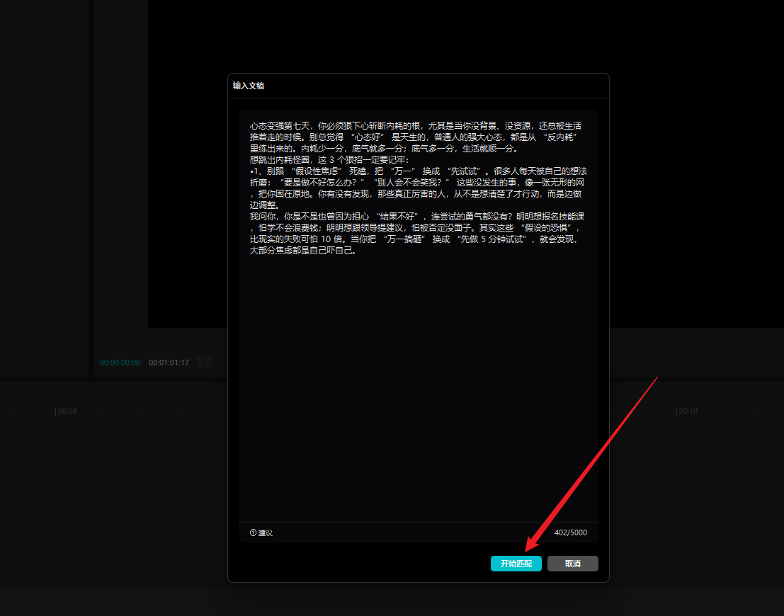 在文本中点击默认文本,把文案稍作调整之后粘贴进去,然后按下图操作: